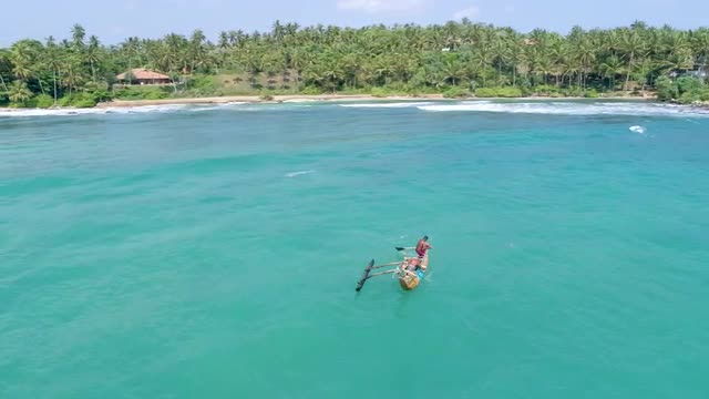 Slow motion shot of fishermen with fishing rods silhouettes on the pier. Scene of the quite sea with golden sun reflection and orange evening sky