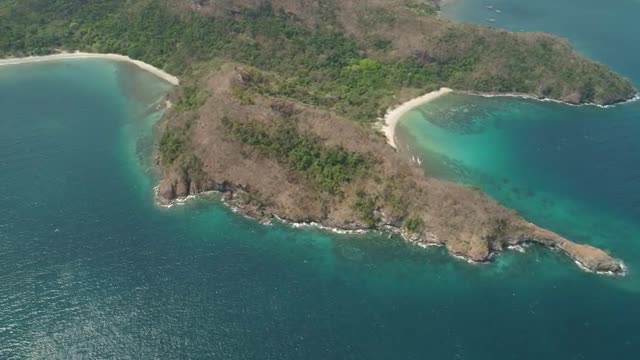 aerial seascape beach with black volcanic sand and waves rolling on ittravel concept. aerial footage