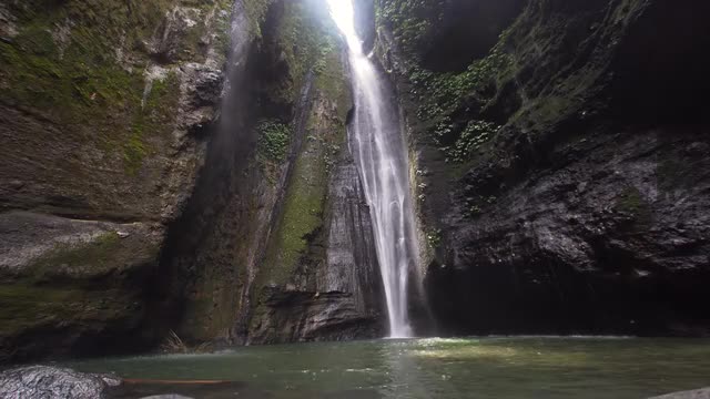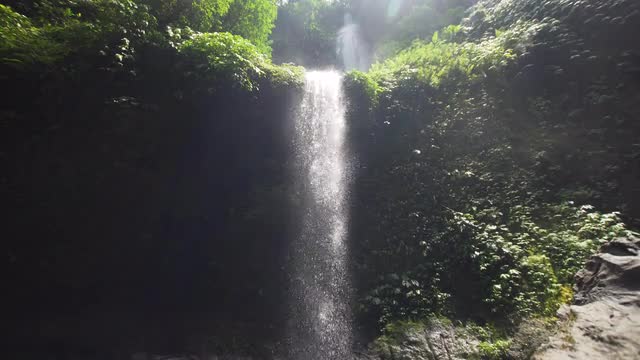 waterfall in green rainforest. Aerial view triple tropical waterfall Sekumpul in mountain jungle. Bali,Indonesia. Travel concept. Aerial footage.