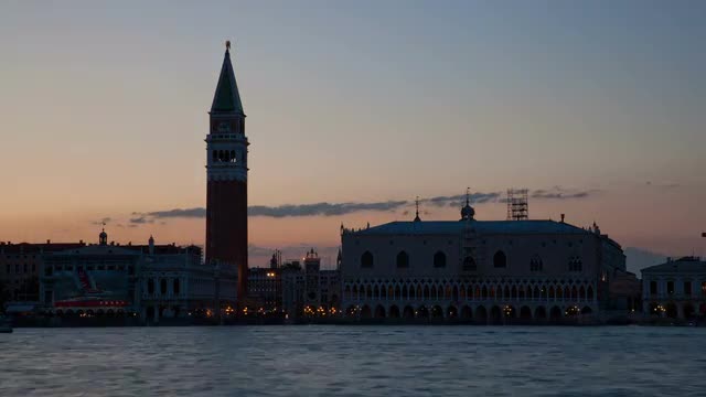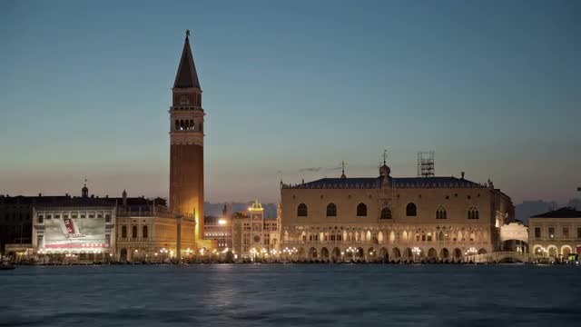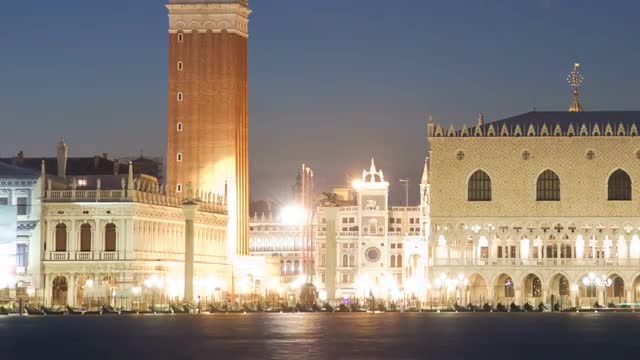 > Night view of Saint Marks Basilica on Piazza San Marco in Venice, Italy