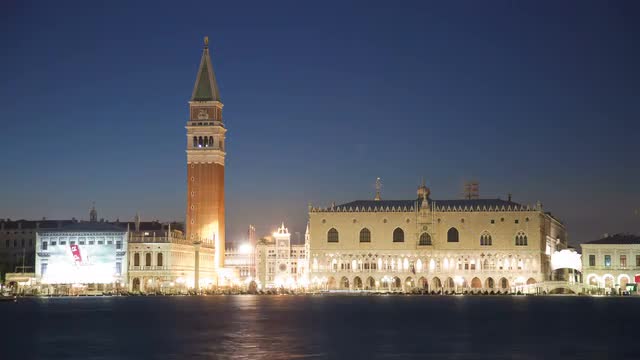 Night view of Saint Marks Basilica on Piazza San Marco in Venice, Italy