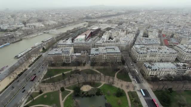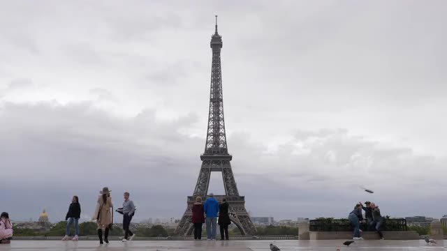 PARIS, FRANCE - SEPTEMBER 29, 2017: Slow motion shot of tourists enjoying cityscape and taking photos with Eiffel Tower being at the viewing point