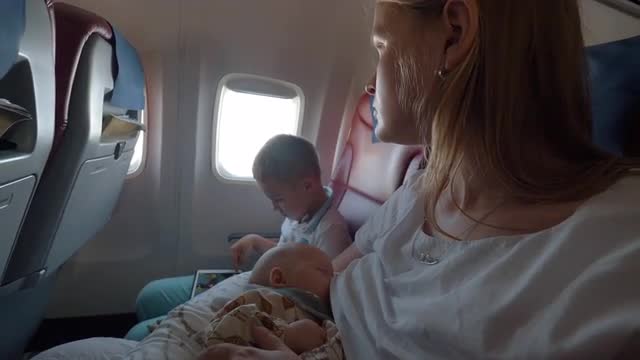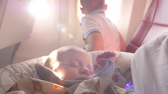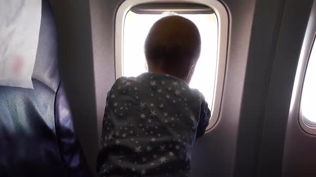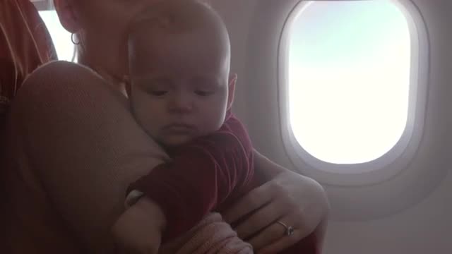 > baby look on airplane