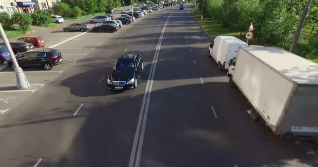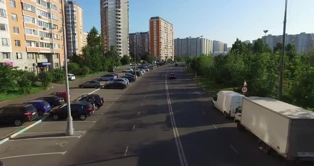 > Aerial: Big road junction at Moscow beltway with automobiles and night city lights