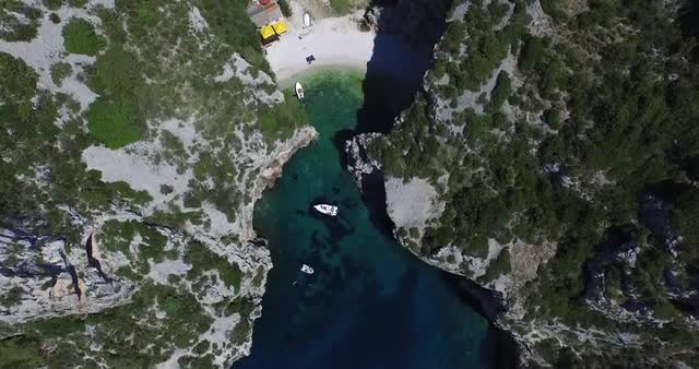 breakwater entrance fishing harbor with boats fishermen. aerial view seascape seaport with breakwater and sea