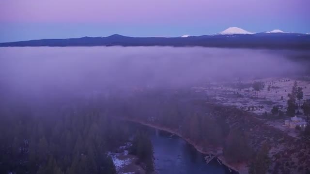 Oregon circa-2018. Aerial view of Bend, Oregon at dawn. Shot from helicopter with Cineflex gimbal and RED Epic-W camera.