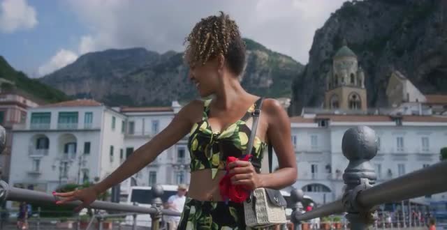 Woman smiling into the camera while walking. R3D available upon request.
