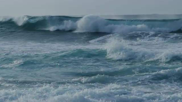 Ocean waves crashing in slow motion on North Shore of Oahu, Hawaii