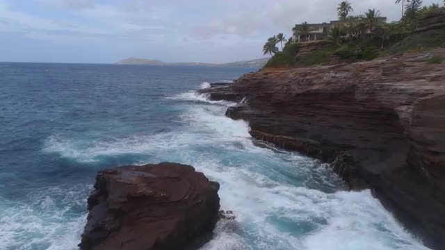 Waves crashing cliffs and rocks, Oahu, Hawaii