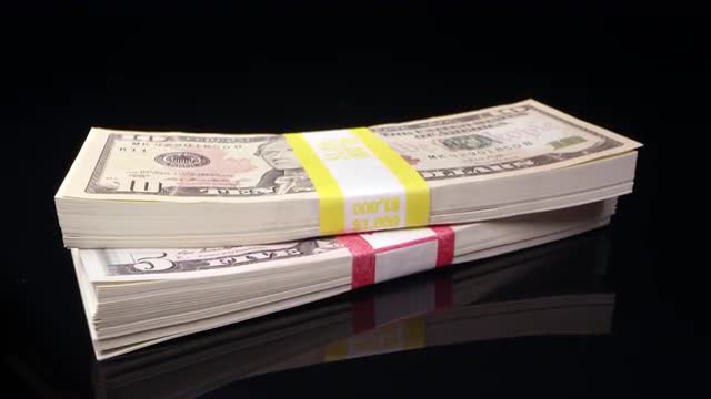 Macro view of money panning over 100 dollar bills in a messy pile.