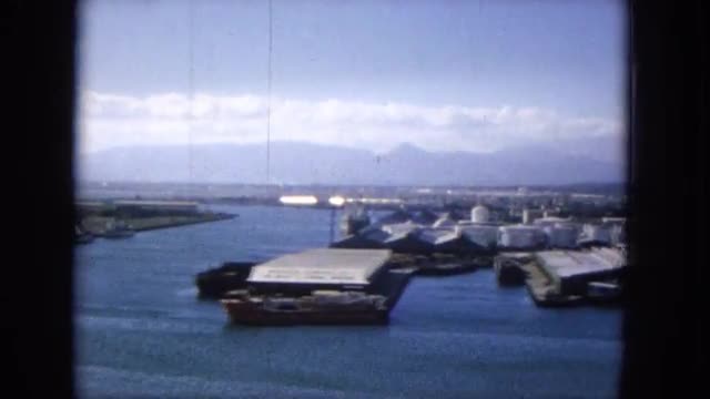 Honolulu, Oahu, Hawaii circa-2018. Aerial view of shipping port in Honolulu, Hawaii . Shot with Cineflex and RED Epic-W Helium.