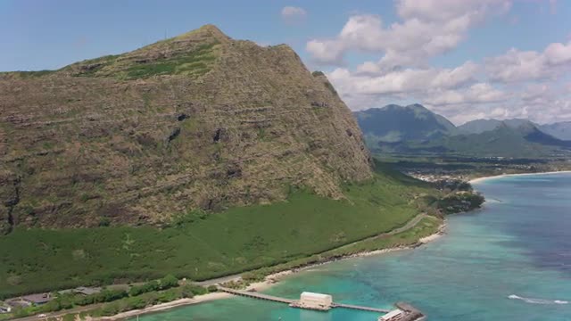 Oahu, Hawaii circa-2018. Aerial view of Waimanalo Beach. Shot with Cineflex and RED Epic-W Helium.