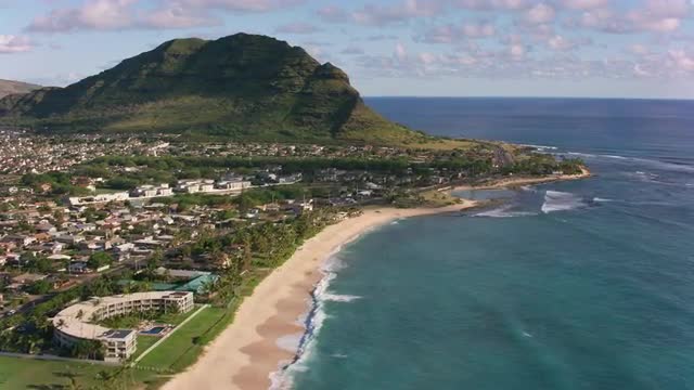 Oahu, Hawaii circa-2018, Aerial view of Lahilahi Point. Shot with Cineflex and RED Epic-W Helium.
