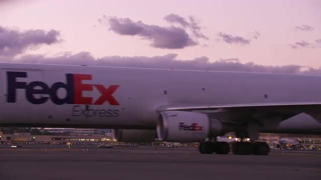 Honolulu, Oahu, Hawaii circa-2018. FedEx jet taxis at Honolulu International Airport. Shot with Cineflex and RED Epic-W Helium.