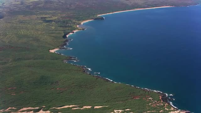 Molokai, Hawaii circa-2018. Aerial view of Molokai coast. Shot with Cineflex and RED Epic-W Helium.