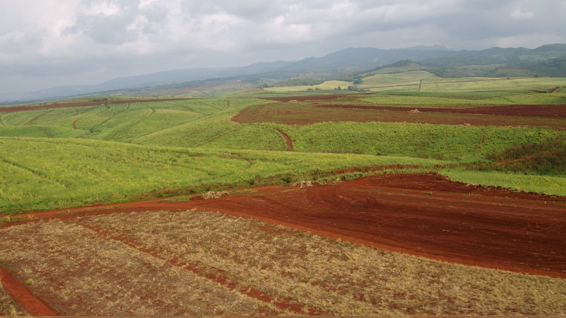Maui, Hawaii circa-2018. Aerial view of farmlands on Maui. Shot with Cineflex and RED Epic-W Helium.