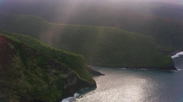 Big Island, Hawaii circa-2018. Aerial view of cliffs along Hawaii coastline. Shot with Cineflex and RED Epic-W Helium.
