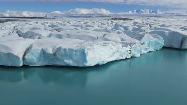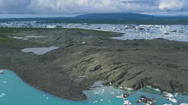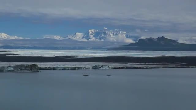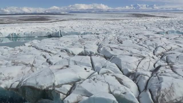 Anchorage, Alaska circa-2018. Aerial view of glacier in spring near Anchorage, Alaska. Shot from helicopter with Cineflex gimbal and RED Epic-W camera.