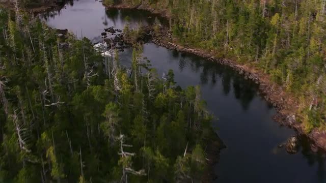 British Columbia circa-2018. Aerial shot of waterfalls. Shot from helicopter with Cineflex gimbal and RED Epic-W camera.