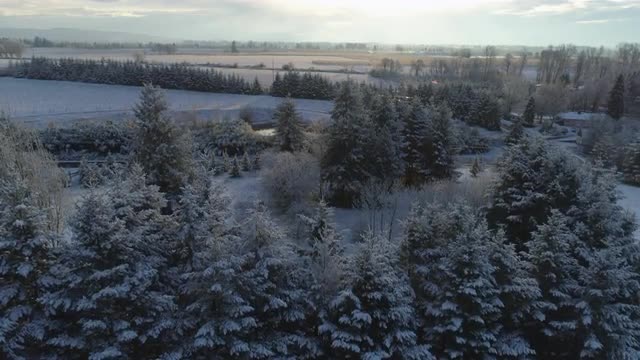 Flying over Oregon countryside in winter; covered in snow