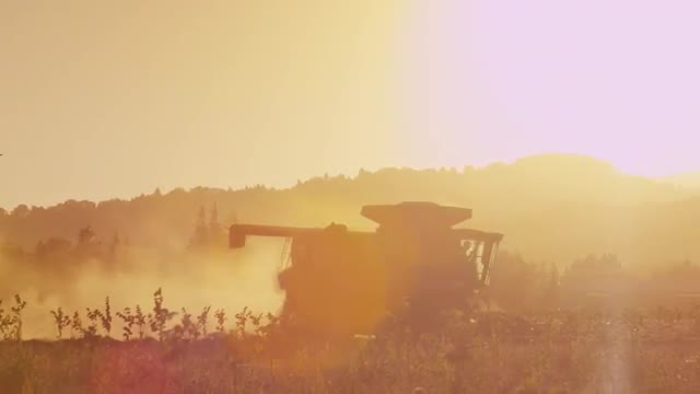 473664 - 24_35_15_Combine_Harvester_working_on_field_at_sunset_Aerial