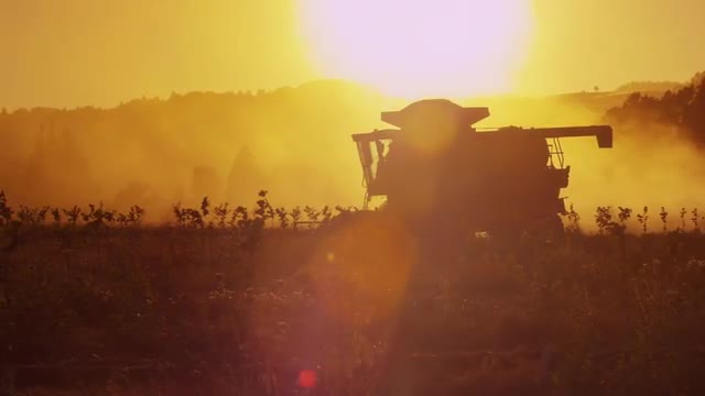 473623 - 23_35_15_Combine_Harvester_working_on_field_at_sunset_Aerial