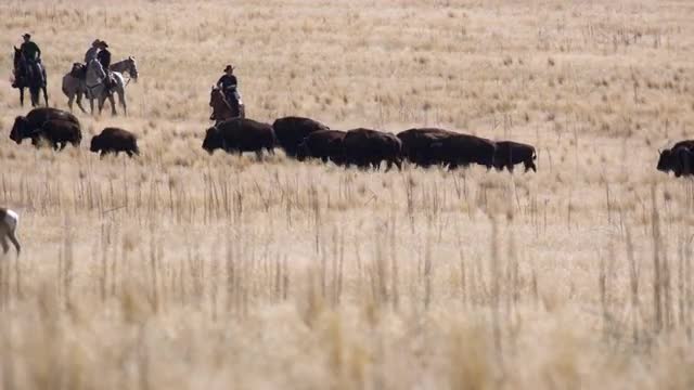 542145 - Static shot of the top of bison head and horns