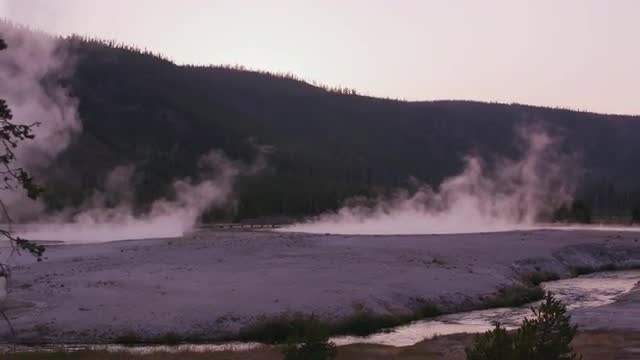Geyser basin at sunset, Yellowstone National Park