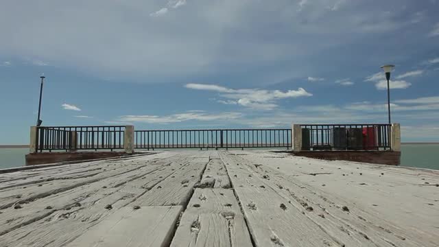 Beautiful dolly view on the pier in Puerto Madryn, Argentina.