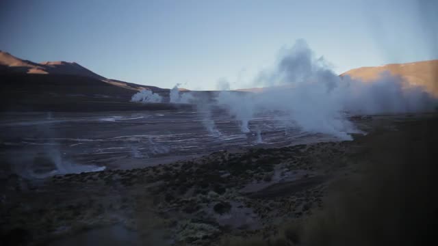 Sunrise at the desert San Pedro do Atacama. Geyser del Tatio.