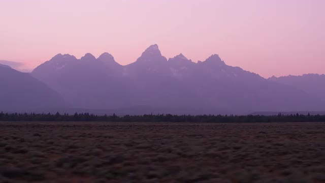 2134126 - Medium shot of Grand Teton mountains at sunset