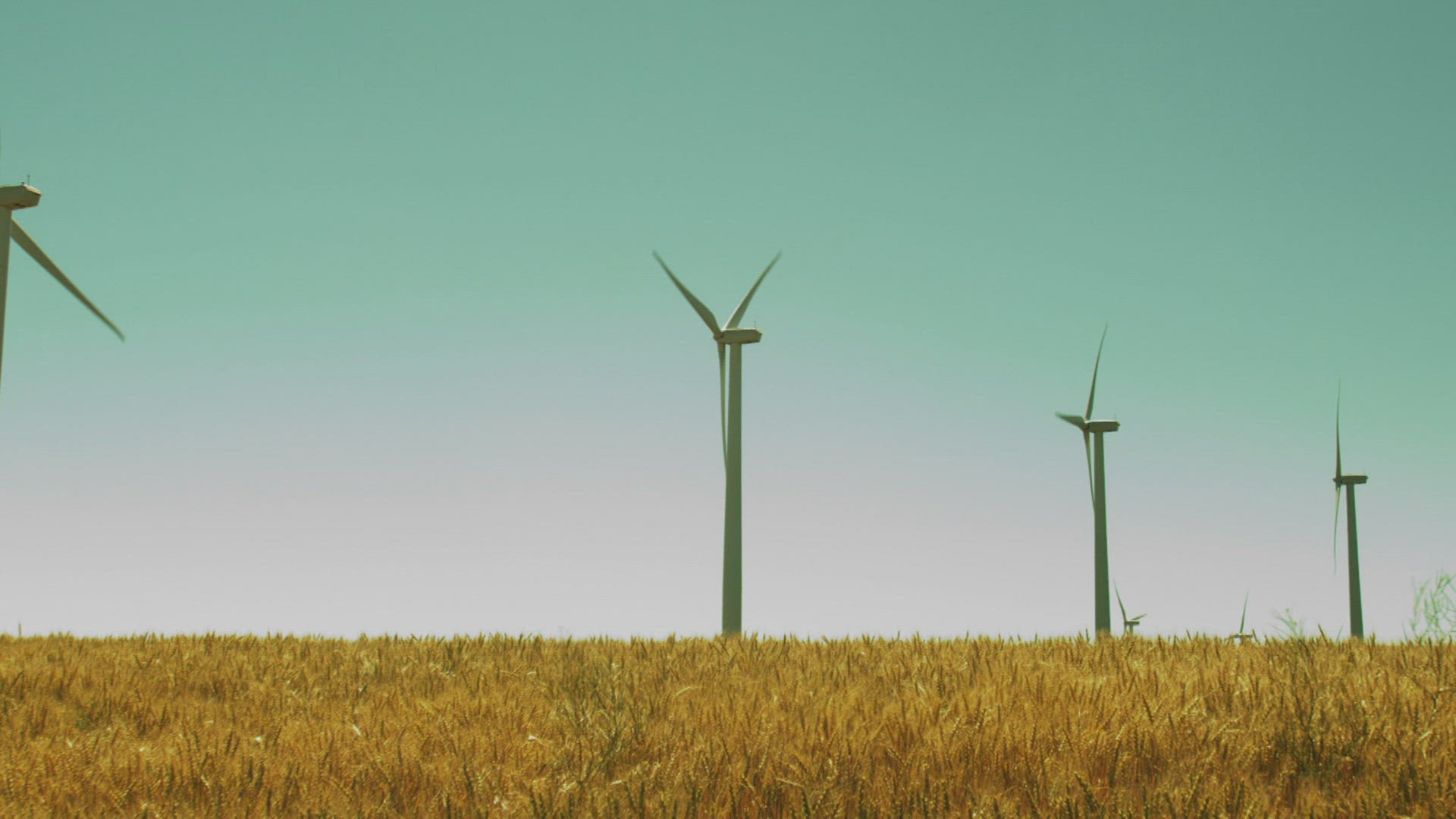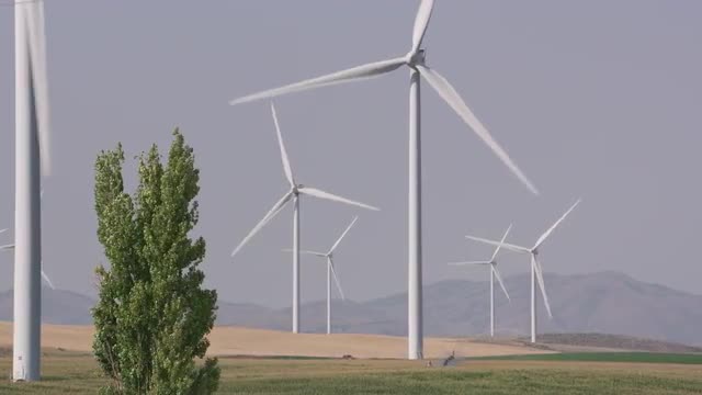 Energy producing wind turbines in rural area, Wyoming