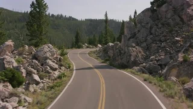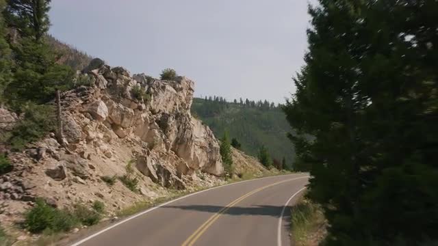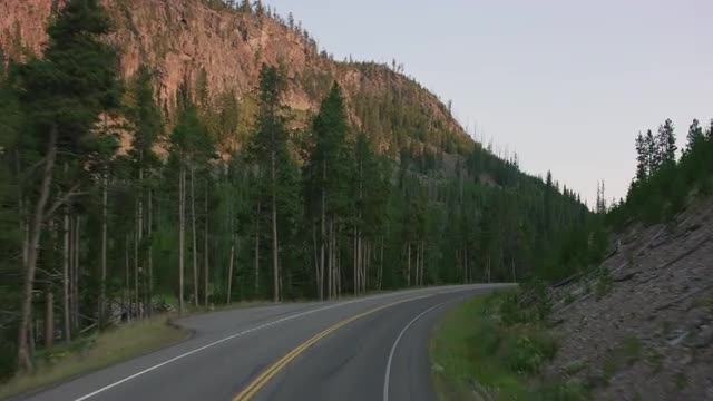 Yellowstone National Park circa-2018. Driving by beautiful scenery.