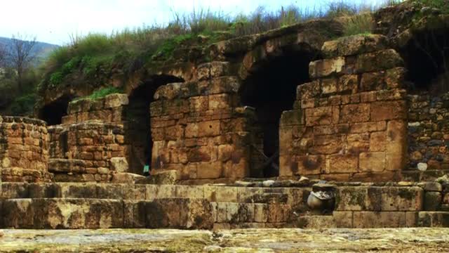 85202 - Ancient warehouse vaults in a hillside shot in Israel.