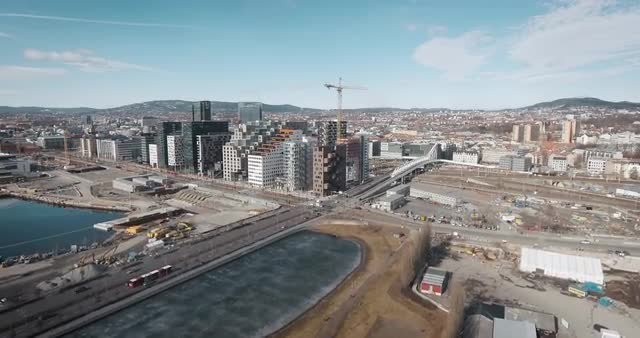 5K Aerial hyperlapse of one of the most popular architecture landmarks in Oslo - Barcode district.