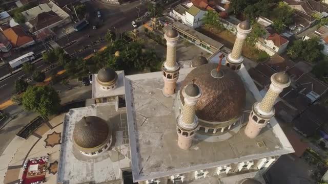 beautiful mosque with minarets on island Java Indonesia. aerial view mosque in an asian city
