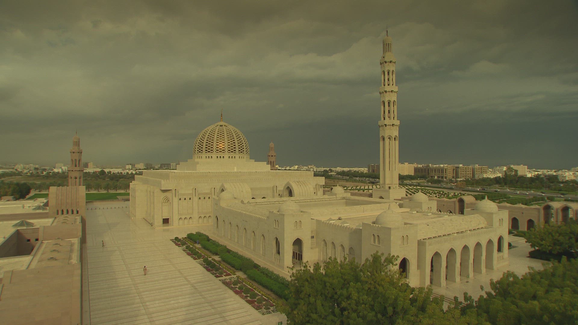 beautiful mosque with minarets on island Java Indonesia. aerial view mosque in an asian city