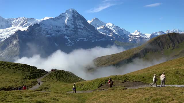 timelapse of clouds and railway to Kleine Scheidegg in the Berner Oberland in Switzerland