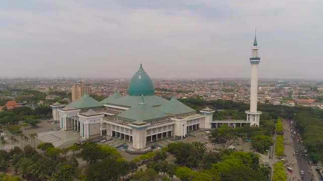 aerial view mosque in Indonesia Al Akbar in Surabaya, Indonesia. beautiful mosque with minarets on island Java Indonesia. mosque in an asian city