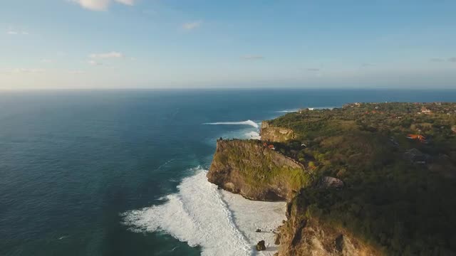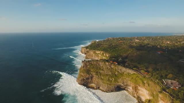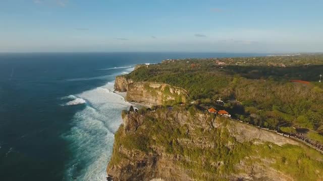 aerial view hindu temple on hill against sea and blue sky. aerial seascape