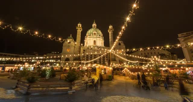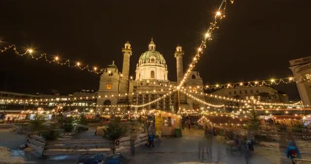 Hyperlapse shot of Karlskirche Palace in Vienna, Austria.