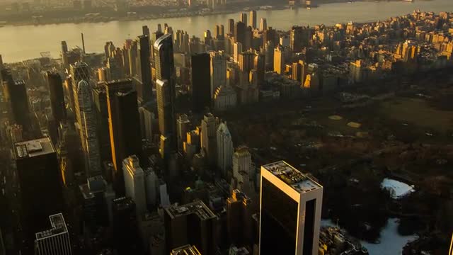 Aerial view of cityscape at the lower end of Central Park in Manhattan, New York.
