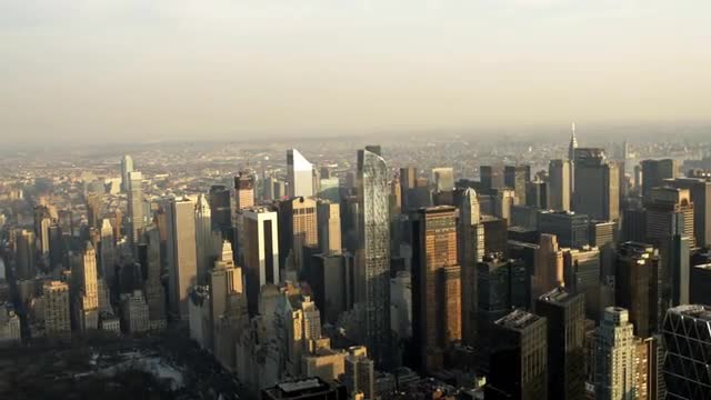 Aerial view over Cityscape by lower Central Park in Manhattan, New York.