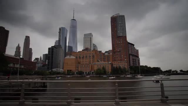 Hyperlapse of clouds passing over the World Trade Center and lower manhattan