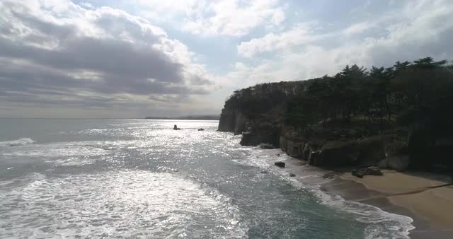 Aerial footage of the coast line in Ibaraki Prefecture, Japan