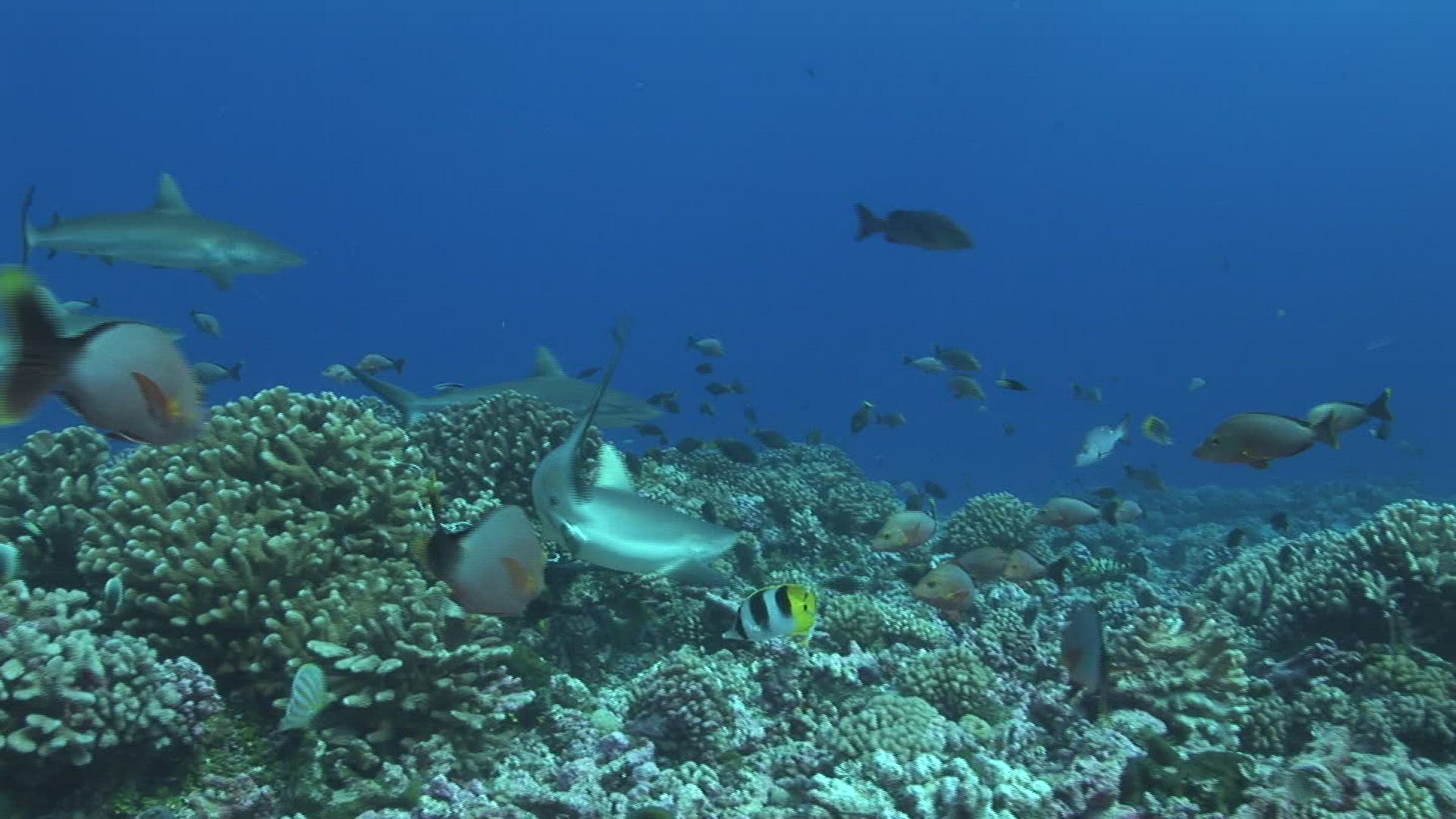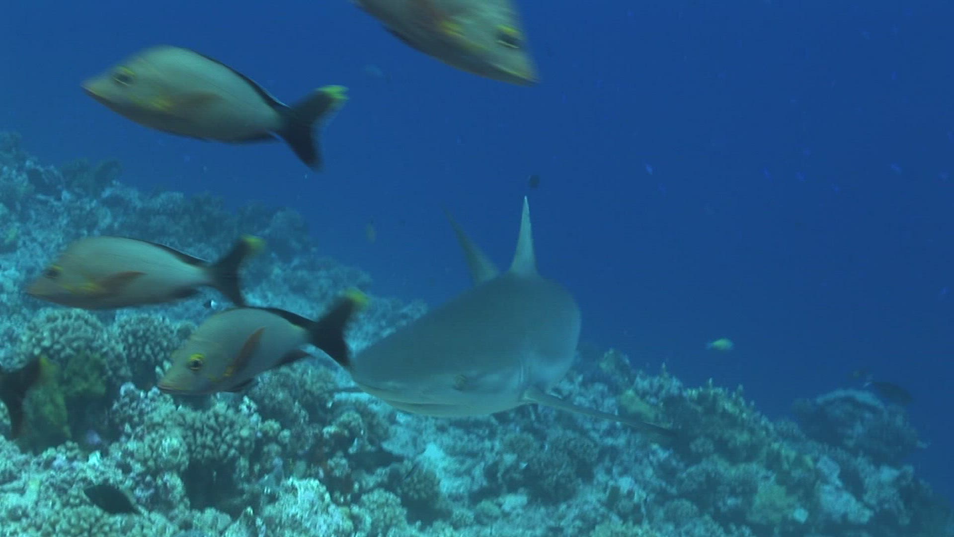 sharks underwater fish swimming oceans predators fins schools