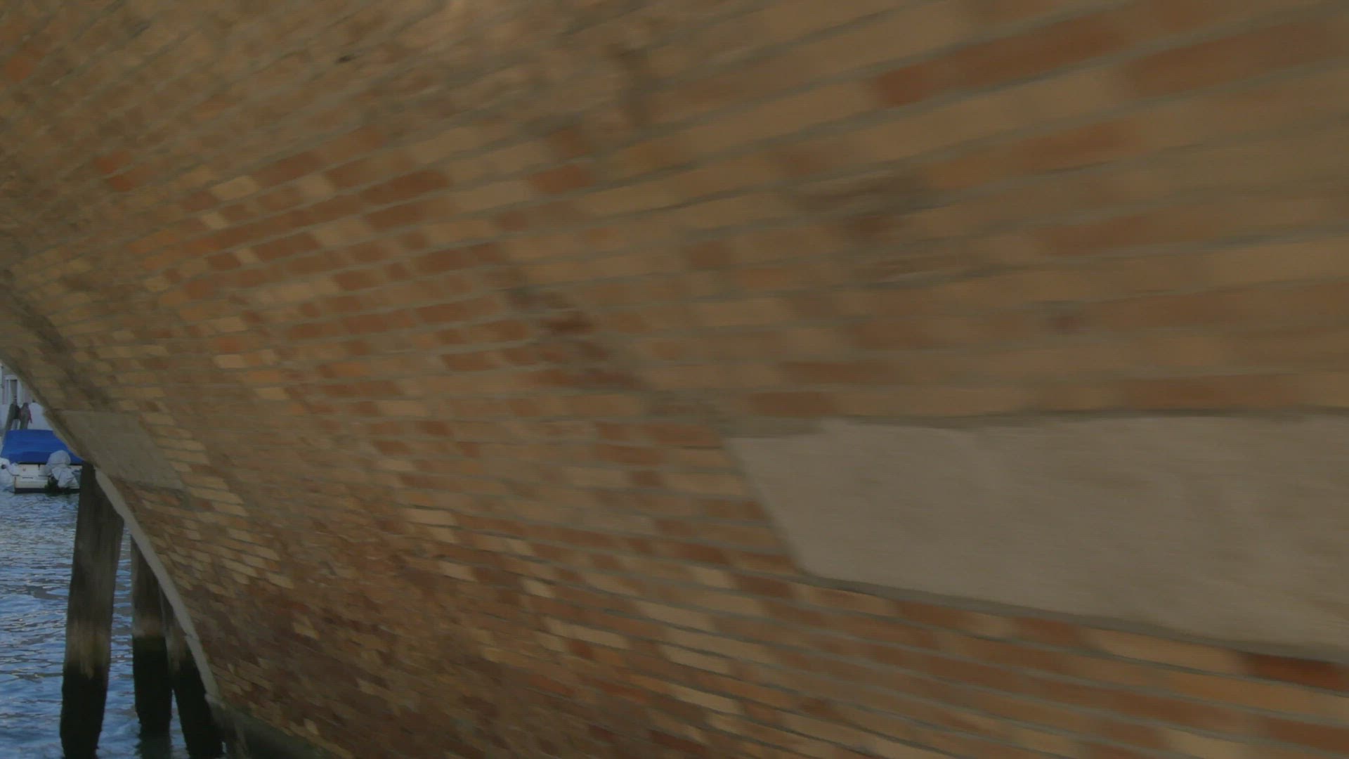 A woman walking towards an archway in Venice, Italy