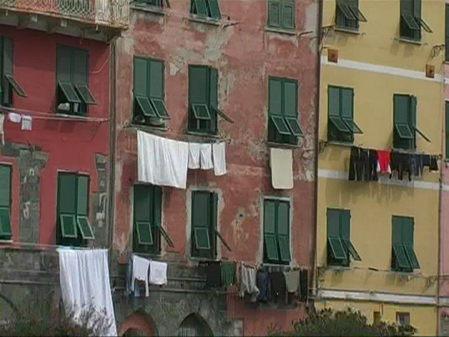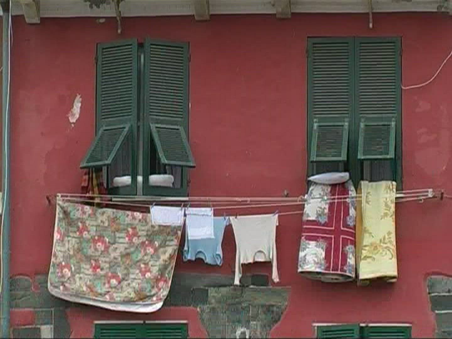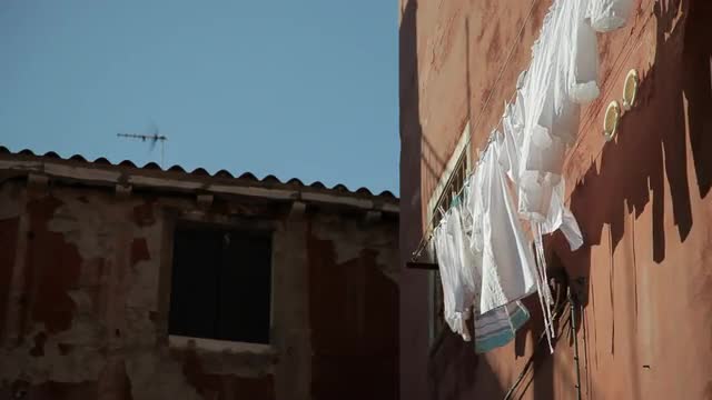 A close up shot of hanging clothes drying in Venice, Italy