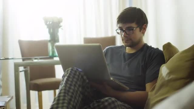 Little Boy Using Tablet Computer Lying In Bed, Typing Text