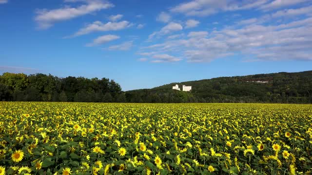 Sun and moving clouds in the blue sky